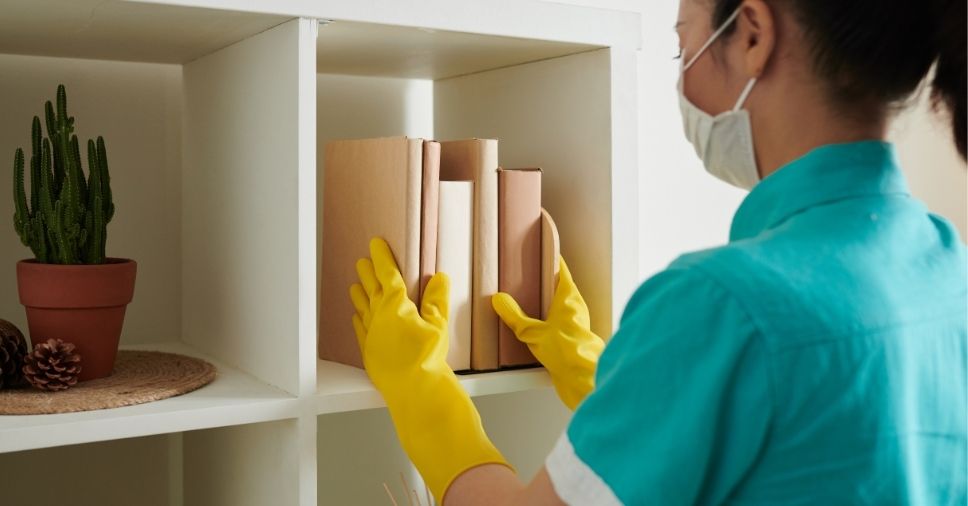 Primeiramente, antes de recolocar os livros, é fundamental limpar a estante. Para isso, o ideal é que você utilize um pano úmido com álcool. Contudo, é crucial esperar que a superfície seque completamente antes de devolver os livros ao local. Nunca coloque um livro em uma estante úmida, pois a umidade favorece o amarelamento e o surgimento de manchas.